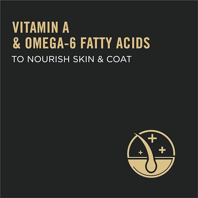 - Vitamin A and Omega-6 fatty acids to nourish skin and coat