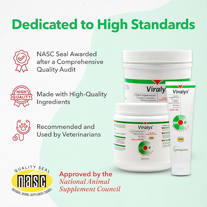 - Vet Recommended - Trusted by veterinarians, Viralys L-Lysine Gel provides a safe and reliable solution for supporting your cat's immune and respiratory systems.