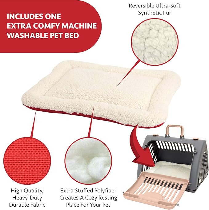 - Includes 1 Grey with tan door carrier and 1 extra comfy pet bed