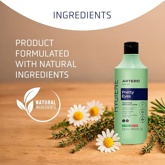 ARTERO Pretty Eyes. Eye Cleaner. Effectively removes Tear Stains from The Tear ducts of Dogs and Cats, ensuring a Clean and Healthy Appearance. 300 ml Bottle for Regular use.