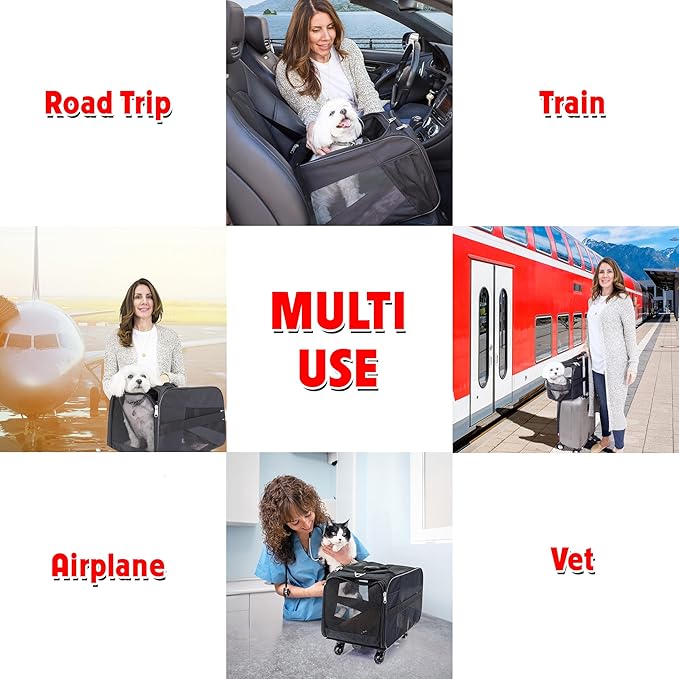 dbest products Pet Smart Cart, Medium, Black, Rolling Carrier with wheels soft sided collapsible Folding Travel Bag, Dog Cat Airline Approved Tote Luggage backpack