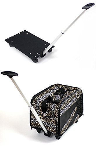 dbest products Pet Smart Cart, Medium, Leopard, Rolling Carrier with Wheels Soft Sided Collapsible Folding Travel Bag, Dog Cat Airline Approved Tote Luggage Backpack