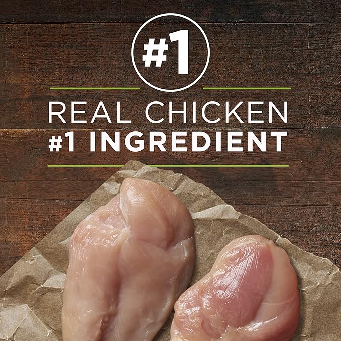 - Real chicken is the first ingredient in this Purina canned dog food to help provide high protein to support his strong muscles
