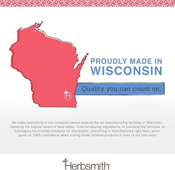 - MADE IN THE USA - This supplement was developed by holistic veterinarian, Dr. Chris Bessent, who owns and operates Herbsmith’s two facilities in Wisconsin. It’s quality you can trust from a veterinarian with over 30 years of experience.
