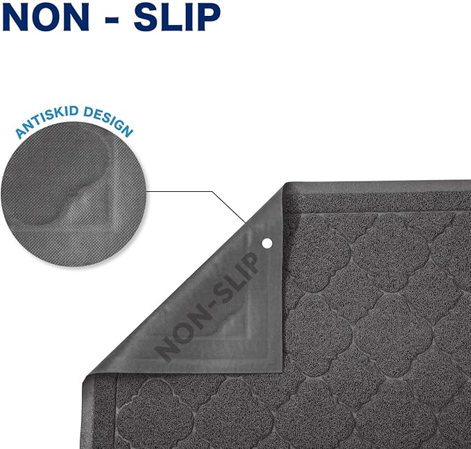 - [FEATURES]: This mat is long lasting, water & urine resistant, soft for paws and easy to clean. The non-slip back keeps the mat in place while making sure that no litter escapes to your floor. Elegant design blends beautifully with both modern and traditional home decor.