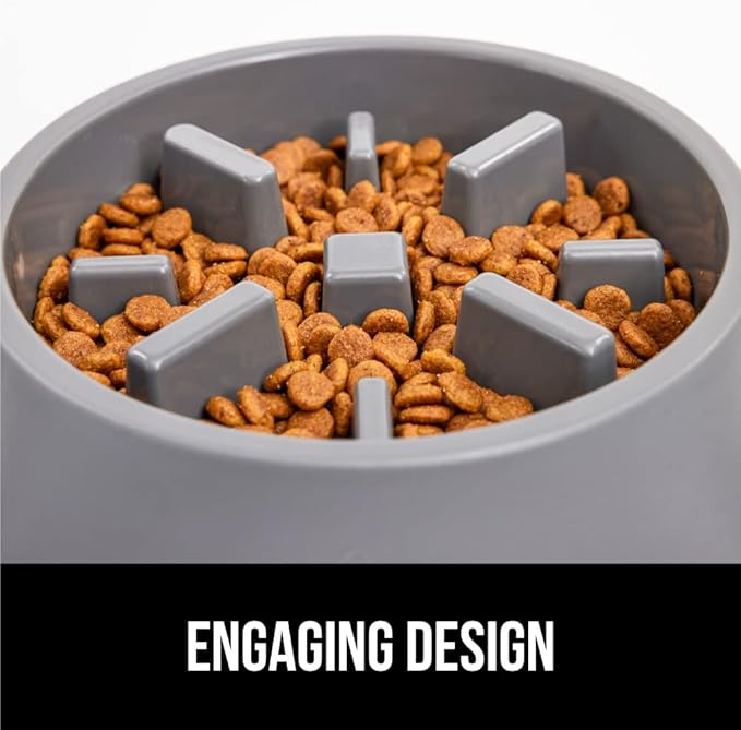 GORILLA GRIP Patent Pending Slow Feeder Dog Bowls, Interactive Puzzle Toy for Dogs and Cats Food Training, Keeps Pets Busy and Prevents Puppy Overeating, All Breeds, 100% BPA Free, 1 Cup, Gray