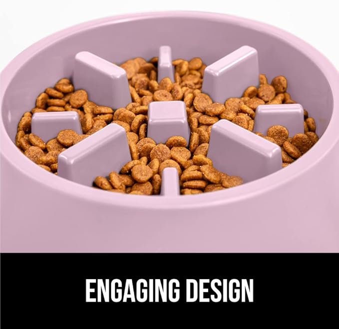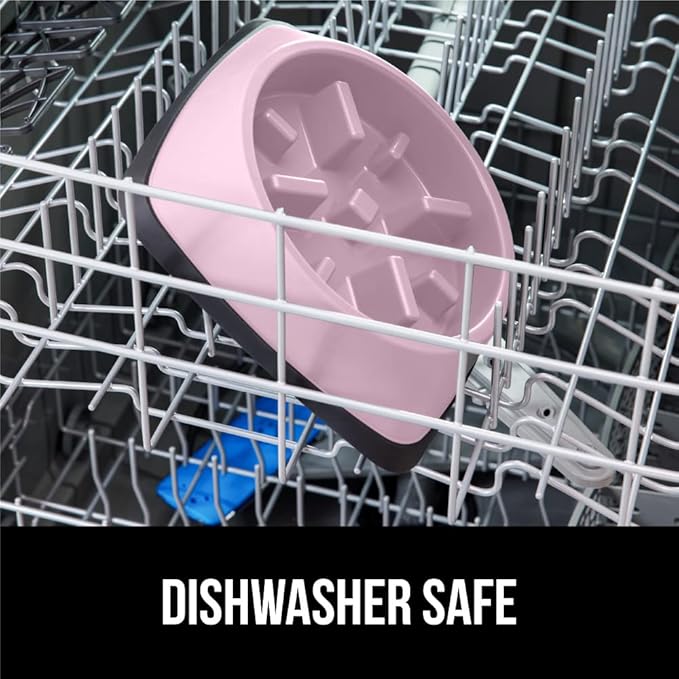 GORILLA GRIP Patent Pending Slow Feeder Dog Bowls, Interactive Puzzle Toy for Dogs and Cats Food Training, Keeps Pets Busy and Prevents Puppy Overeating, All Breeds, 100% BPA Free, 2 Cup, Pink