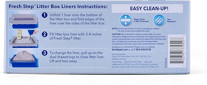 - FITS MOST CAT LITTER BOXES — These Fresh Step jumbo litter box liners will fit most large litter pans and can conform to the size of your kitty's litter box. These are unscented for sensitive noses