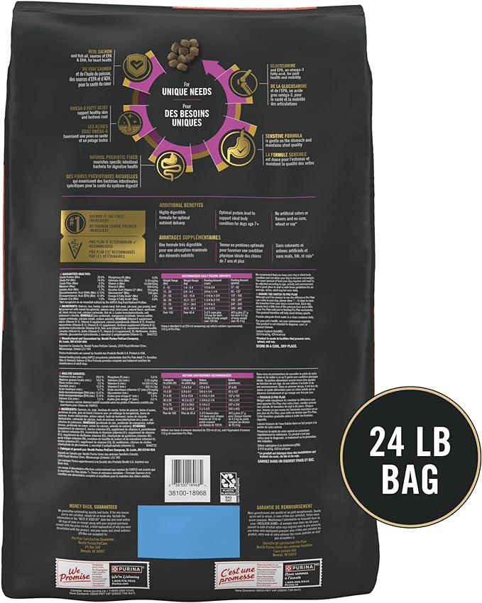 Purina Pro Plan Sensitive Skin and Stomach Dry Dog Food Senior Adult 7 Plus Salmon and Rice Formula - 24 lb. Bag