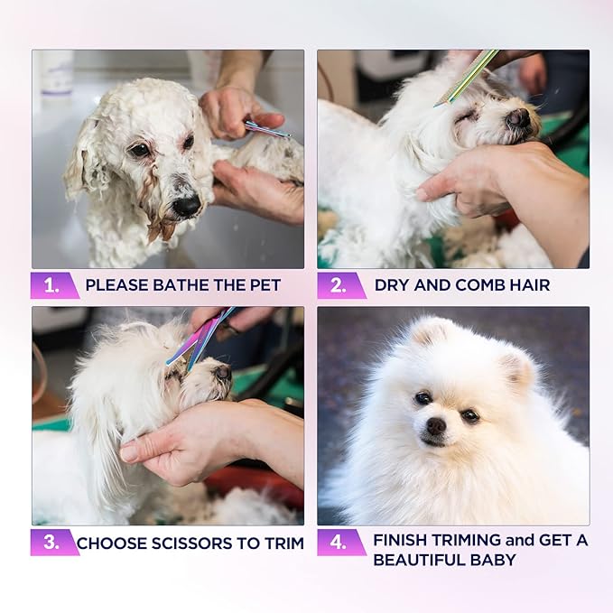 - 【Safety Rounded Tips for Best Protection 】This grooming shears are made with a secure, rounded tip, so you no longer have to worry about poking your dog during the trimming process, especially when trimming sensitive areas (face, ears, eyes, nose or PAWS)