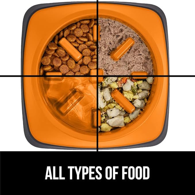 - ALL FOOD TYPES: no matter what food your pet’s diet consists of, the bowl will work to help slow down their eating; the bowl can be used with wet food, dry food, fresh food, and even water or ice; no matter what type of food you use, the bowl is dishwasher safe for an easy clean; bowl is made from safe food grade materials