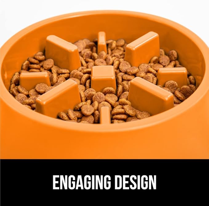Gorilla Grip Slow Feeder Dog and Cat Bowls, Interactive Puzzle Toy for Dogs and Cats Food Training, Keeps Pets Busy and Prevents Puppy Overeating, Large, Small Breeds, 100% BPA Free, 1 Cup Orange