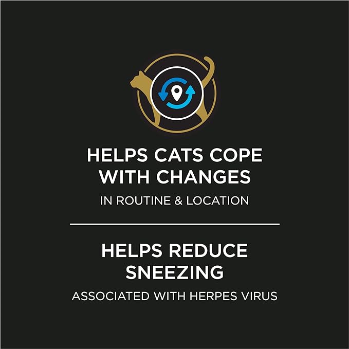 - Supports cats’ ability to cope with changes in routine and location, relieves cat stress and supports positive behaviors such as playing and seeking out social contact