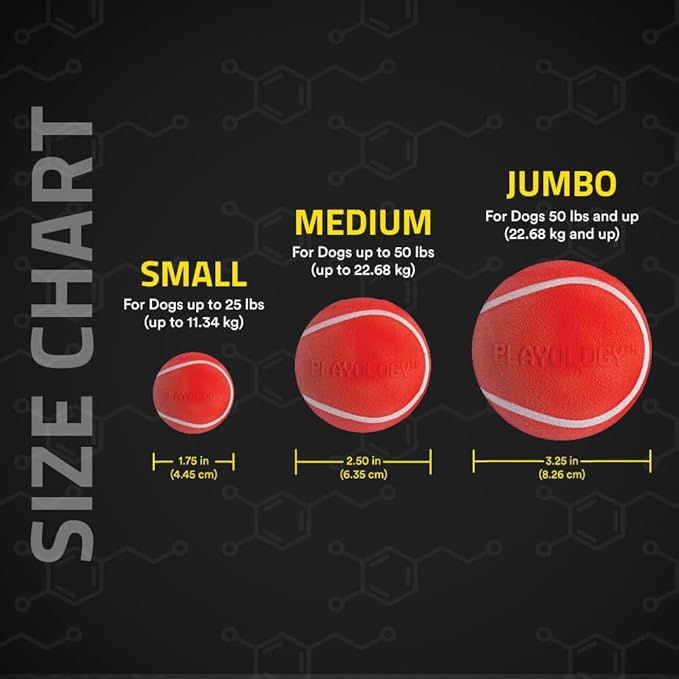 - Playology's Squeaky Chew Ball: This Medium squeaky dog ball features a fun squeak to catch your dog's attention and keep them entertained 7x longer than unscented toys. This rubber dog ball is ideal for medium breeds (up to 50lbs). Durable enough to withstand play indoors and outdoors, this medium dog ball is an essential item to entertain your K9 companion.