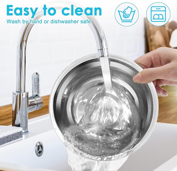 - Premium Stainless Steel: High-quality stainless steel is anti-corrosion, and heat resistant. The stainless steel bowl is durable for long-term use and healthy for your beloved pets, especially for holding hot food.