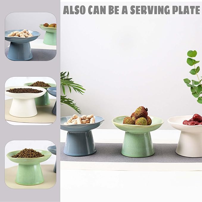 - 【Raised Cat Feeding Bowl】:3.9 inches in height, the elevated pet bowl is high enough and the cats don’t need to bend their heads too much to feed, helps cat swallow more easily, alleviates their occasional vomiting, and reduce strain on the body by alleviating stress in the muscles, bones and joints. Especially better for adult cats.