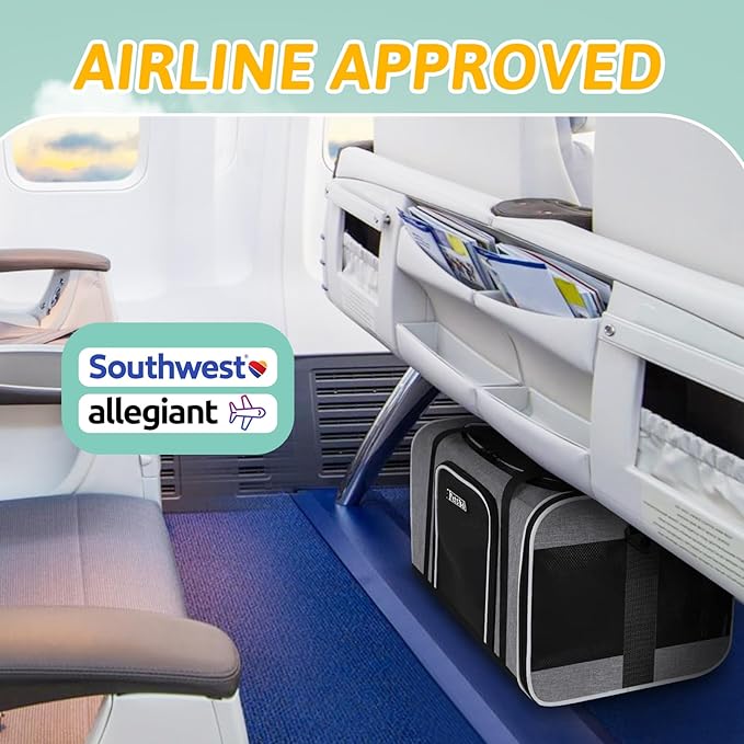 - 【AIRLINE APPROVED CARRIER 】Unfolded size:17"L×13"W×9.5"H, Petskd pet carrier is airline approved and can be placed under the seat in the cabin, it is mainly designed for ①Southwest Airlines:18.5x13.5x9.5", but also compatible with Air Canada:21.5x15.5x10.5". We recommend you buy this carrier when you fly with the above-mentioned airlines.