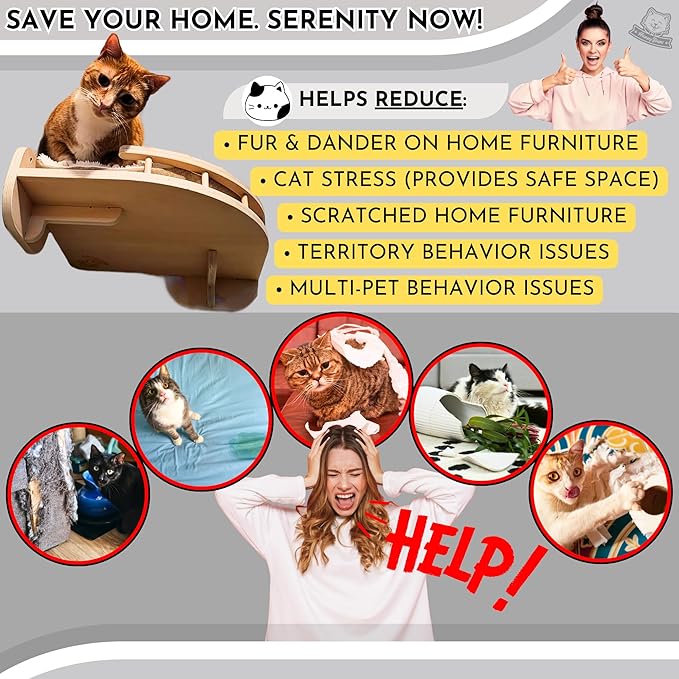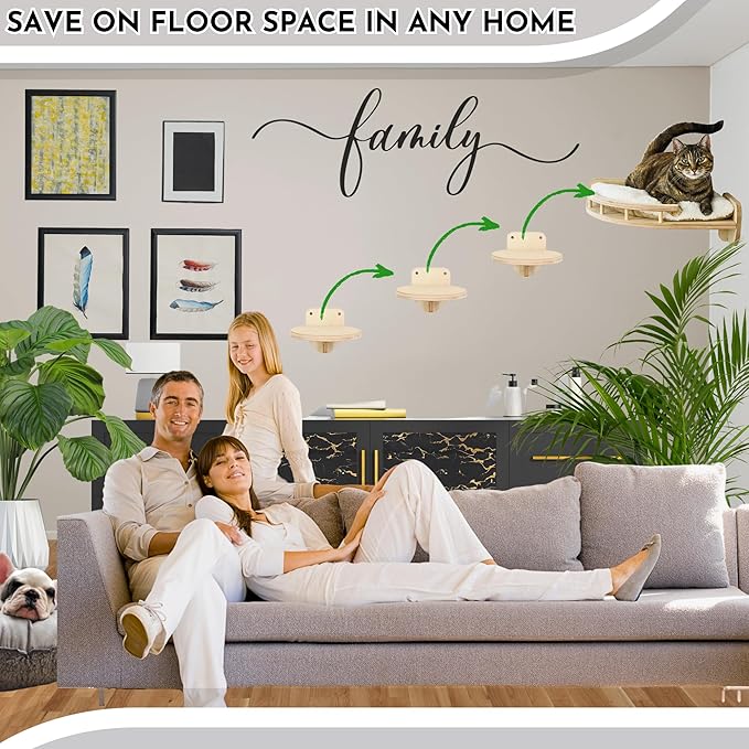- 🏠 HOME SOLUTIONS: Save floor space and reduce hair and dander on home furniture with wall cat shelves! Enrich your cat's life without sacrificing your valuable floor space. Cat wall furniture may also help decrease fur and dander on your home furniture.