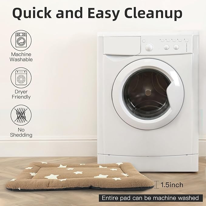Mora Pets Dog Crate Pad Dog Kennel Bed Mat for Large Dogs Washable Cute Star Pet Bed for 36 inch Cage Ultra Soft Flat Puppy Cat Cushion for Cozy Sleeping Anti-Slip Brown 36 x 23