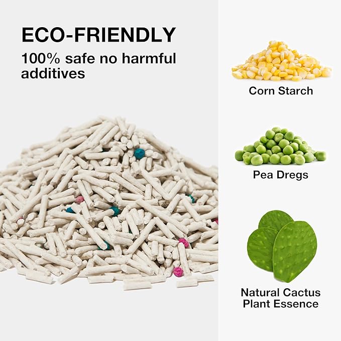 - Superior Odor Control: This tofu litter is infused with natural Cactus plant extract, which can help mask unpleasant odors. Plus, extra added 5% deodorizing beads that effectively control odors, ensuring a fresh and odor-free space