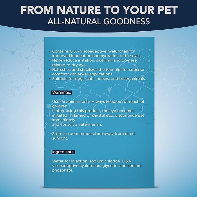 - REVOLUTIONARY TEAR FILM STABILIZATION- Elevate your pet's ocular well-being with our advanced solution that's made to refresh and stabilize the delicate tear film with unparalleled precision. This innovative solution not only refreshes the eyes but also maintains their natural balance, ensuring a superior level of comfort that stands the test of time and ensures fewer applications for longer relief.