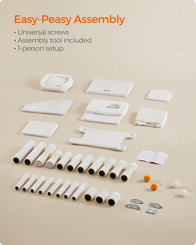 - [Easy to Assemble] Thanks to the universal screws and simple structure, it takes only the included Allen hex key and one person to set up this cat condo