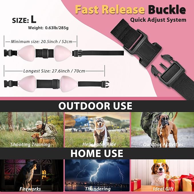 ZOHAN Dog Ear Muffs for Noise Protection, Comfort Dog Noise Cancelling Ear Muffs with Fast Snap Lock for Fireworks, Thunder, Vacuums(Pink,L)