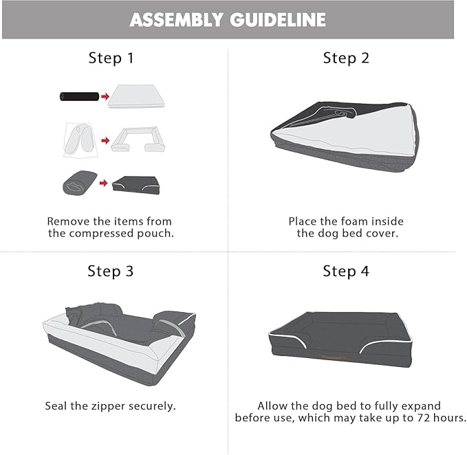 - Waterproof dog bed and easy care cover: The bed cover is waterproof to fully protect the foam from spills, water damage, and other accidents. The removable dog bed cover is machine washable and tumble dry on low heat Please note that the inner foam is not washable. After installed the foam, leave it for 24-48h for rebound.