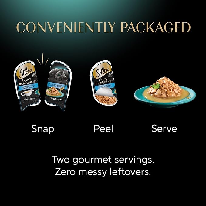 - Perfect For Picky Eaters: Made with real meat, Sheba Gravy Indulgence features cuts of white fish covered in a thick, decadent gravy for a protein-rich meal with irresistible flavors in a variety of textures