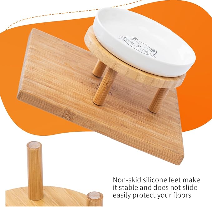 - 【Stable Anti-Skid】: The elevated cat dish stand with anti slip feet make it stable and does not slide easily, it prevent your pet from sliding bowls around and provide protection for your floors. Wide and flat witha raised rim design to prevent spills.