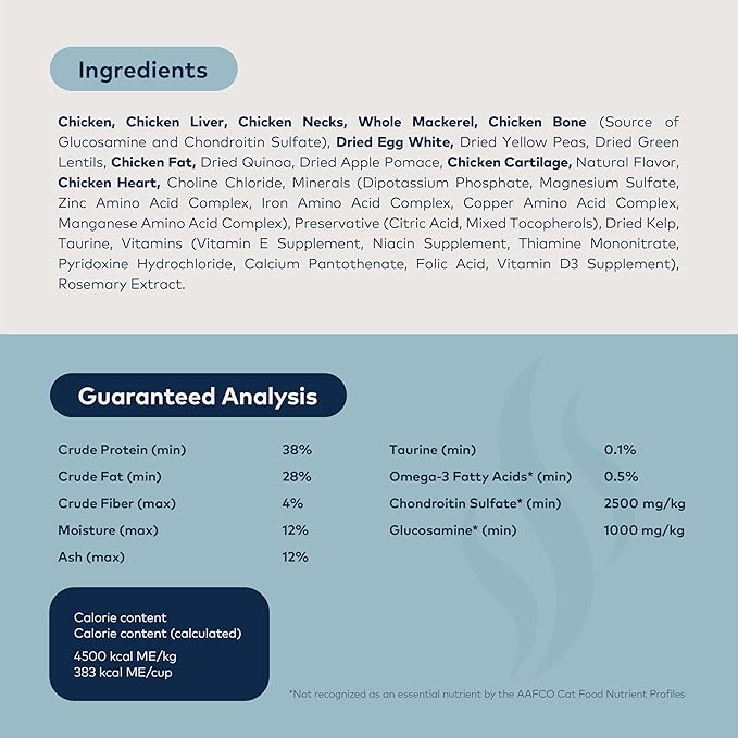 - HIGH PROTEIN, NUTRIENT DENSE: Featuring 90% cage-free chicken, wild-caught fish, organs, and bone, this grain-free cat food delivers nutrition with a mouth-watering taste for all cats. Our innovative two step process uses gentle steam to lock in the nutrients and then air-dried to preserve the nutrients this food supports indoor cat food needs and is perfect for all life stages, from kitten food to senior or adult cats.