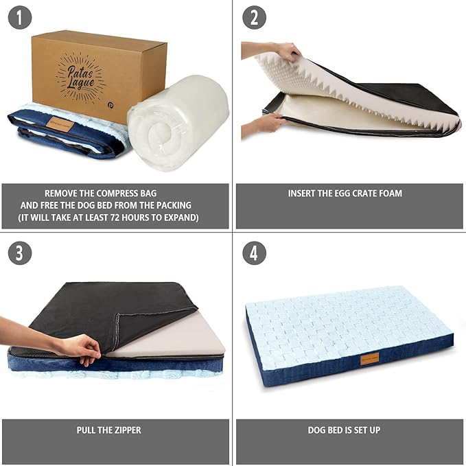 - Care Instructions: The removable cover of the dog bed is machine washable just simply machine wash and tumble dry; please note that the egg crate foam is not washable; as the foam is compressed it will take about seventy-two hours to expand