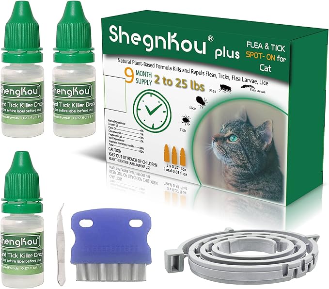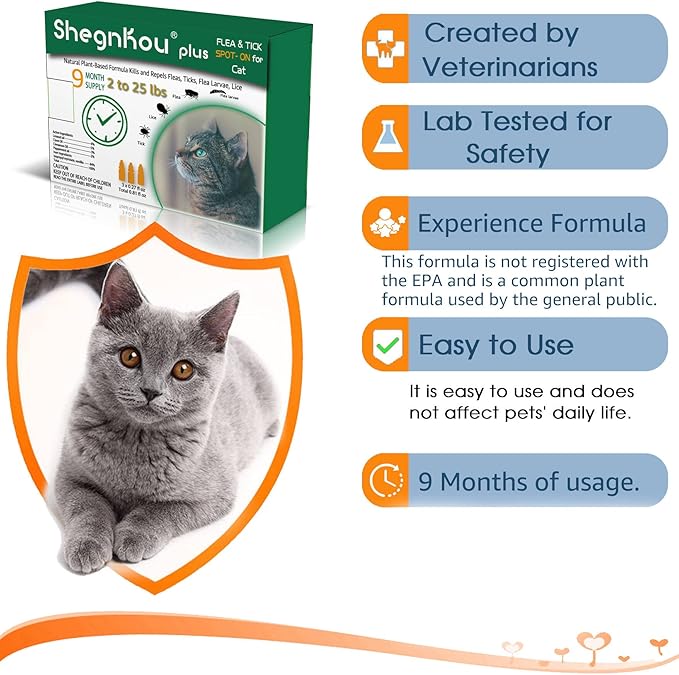 - Vet-Reviewed Formula: Kills Fleas in 12hrs, Blocks Ticks for 9 Months Powered by 100% plant-based actives, our non-toxic treatment soothes skin while creating an invisible barrier against pests. Safe for cats 2-25 lbs.