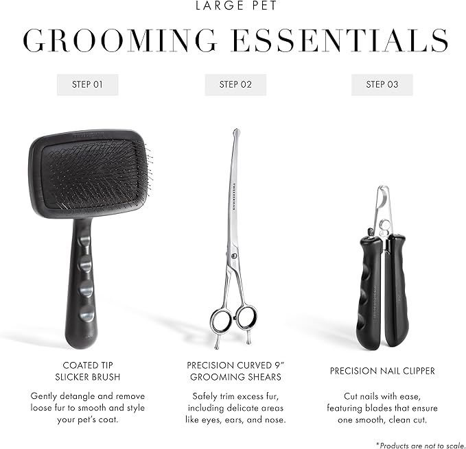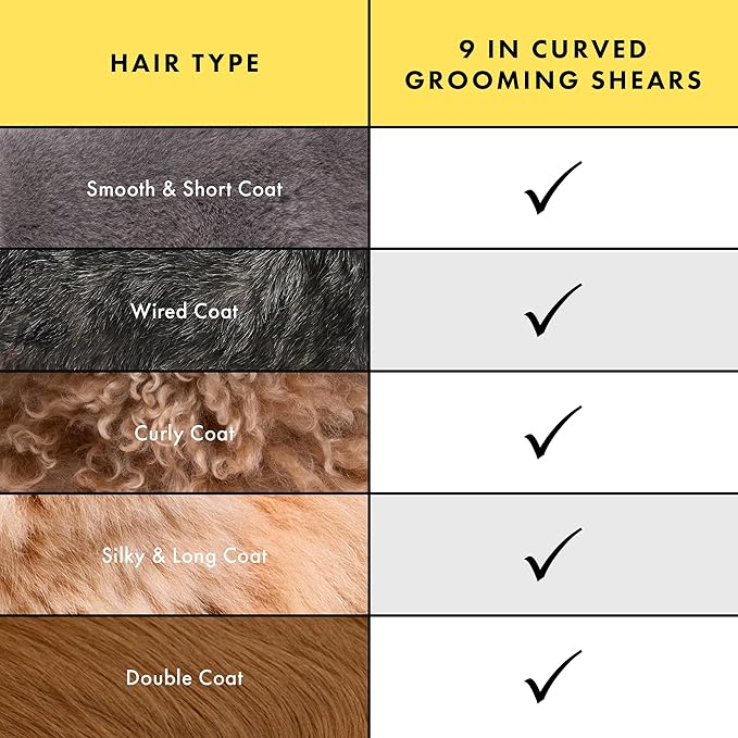 - These curved scissors for dog grooming feature rounded safety tips to prevent nicking the skin, eyes, nose, and ears. Lightweight design provides comfort and prevents hand fatigue while trimming.