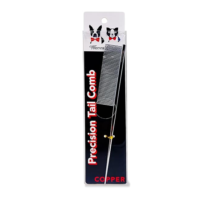 Warren London Precision Tail Comb made with Copper | 7 inches | Rounded Tips Prevent Irritation | Finishing and Fluffing Comb for Grooming Paws Face and Tail | Tear Stain Removal