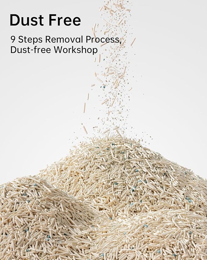 - 【99% Dust-free】We use 9-step removal process to remove most of the dust, and then vacuum pack the cat litter in our dust-free workshop. At the same time thanks to our customers' feedback, we've reduced the percentage of betonite (from 38% to 28%) for this new product to help improve the dust-free experience.