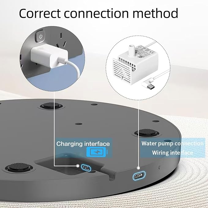 - Battery Operated Pet Fountain: Its wireless design offers the flexibility to place it wherever your cat prefers. Equipped with 5000mAh rechargeable battery, it provides up to 45 days of standby power, so you never have to worry about power outages. CHARGING NOTE:The charging port for the dispenser is on the bottom of the base, not the pump port on the side of the base