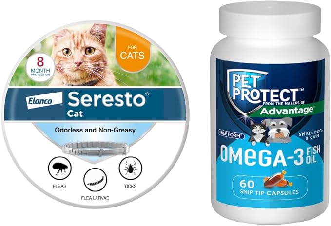Bundle of Seresto Cat Collar for Cats + Pet Protect Omega 3 Supplement for Small Dogs & Cats | 60 Capsules