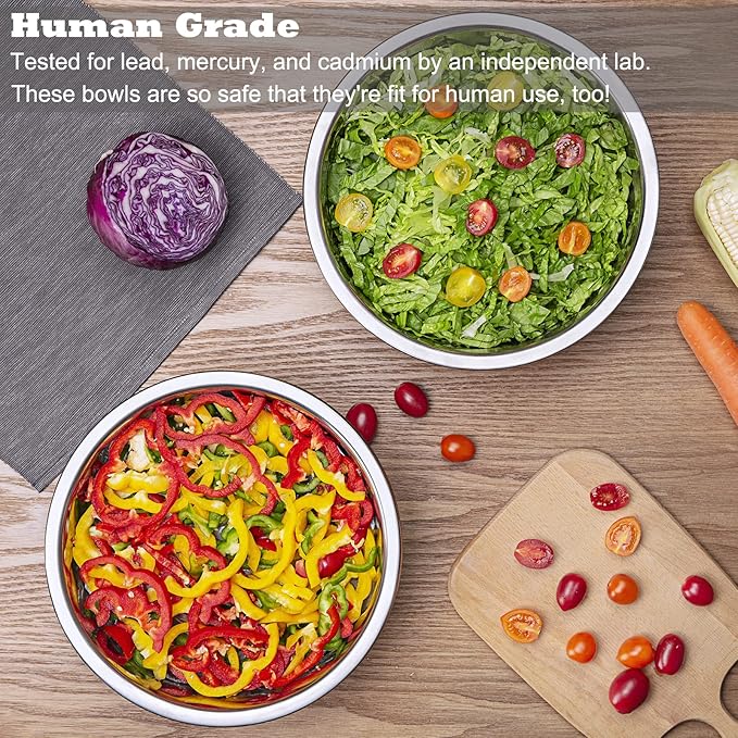 - Human Grade & Food Safe: Veterinarians recommend stainless steel, because of its highest safety over plastic or ceramic bowls. Podinor Pet dishes are made in a facility that typically makes human grade products for the healthcare and food industries. After manufacture, each batch of bowls is tested for lead, mercury, and cadmium by an independent lab. These bowls are so safe that they're fit for human use, too