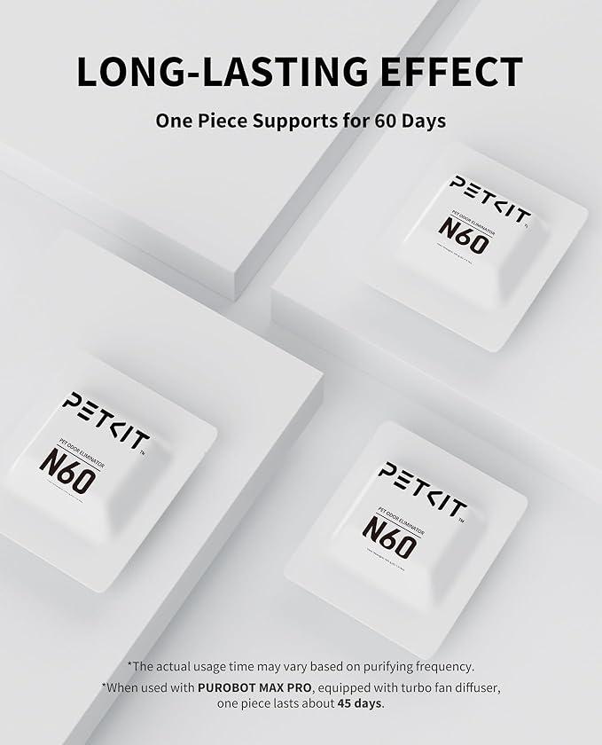 - Custom-Fit for PETKIT PUROBOT: Designed exclusively for PETKIT PUROBOT ULTRA, PUROBOT MAX PRO,PUROBOT MAX PRO 2, PUROBOT Crystal Duo automatic cat litter boxes, the N60 deodorizer seamlessly integrates to keep your space fresh and odor-free