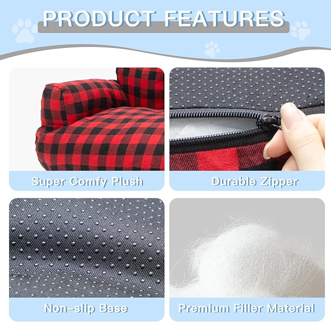 Cat Couch Bed - Cat Bed for Indoor Cats, Calming Pet Sofa Puppy Sleeping Bed with Removable Washable Cover, Cute Dog Couch and Kitty Lounge Chair for 18lbs Cats & Small Dogs(Red & Black)