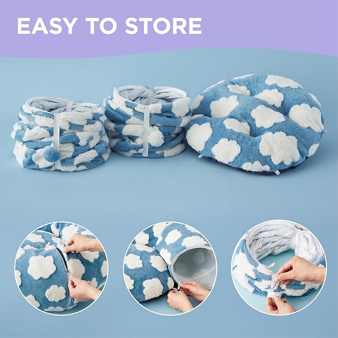Lesure Large Cat Tunnel Bed - Cute Donut Bed for Indoor Cats with Washable Circle Cushion, Round Pet Peekaboo Cave Toy for Multi Kitten/Puppy/Rabbit, Large Cozy Clouds Blue