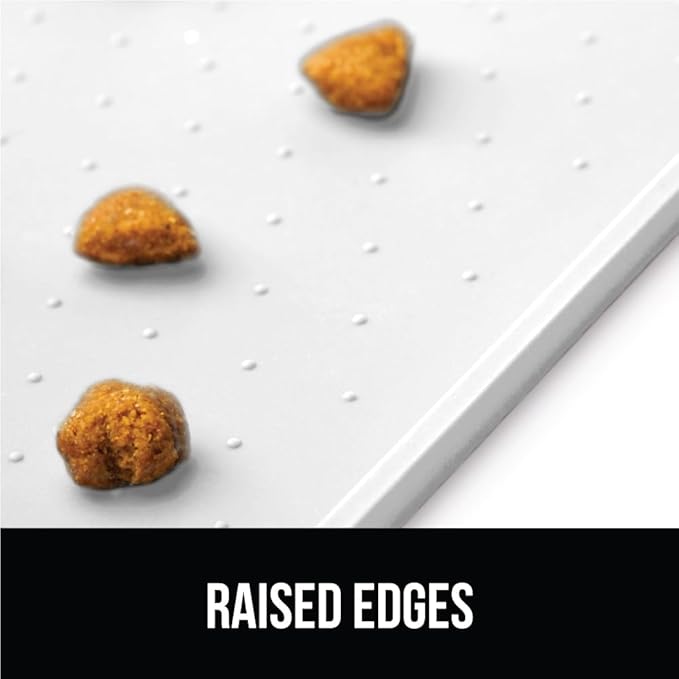 GORILLA GRIP 100% Waterproof Raised Edge BPA Free Silicone Pet Feeding Mat, Dog Cat Food Mats Contain Spills Protects Floors, Placemats for Cats and Dogs Water Bowl, Pets Accessories 16x10, White