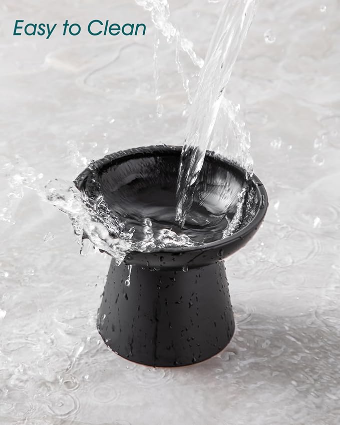 - 【Maintain a Clean Chin】Crafted from premium, lead-free, and cadmium-free ceramic, this cat food dish provides a safe and clean feeding experience. Unlike plastic, it won’t absorb odors or stain. The smooth, non-porous surface makes cleaning effortless—simply rinse with warm water, and it’s ready for your pet’s next meal