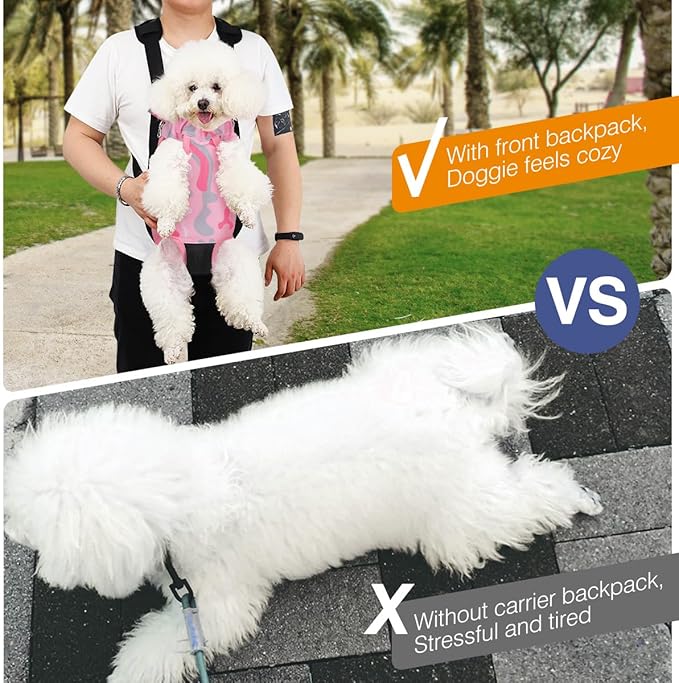 - Two Ways of Wearing: A hands-free pet carrier can be worn on your front side or your backside if you like, it keeps you closer and increases pet's sense of security when you carry your cat or dog around. Meanwhile, the thickened sponge pad helps to relieve the burden of your shoulder.