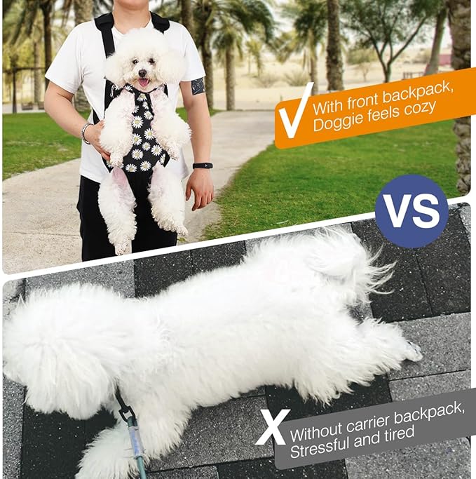 Pawaboo Pet Carrier Backpack, Adjustable Pet Front Cat Dog Carrier Backpack Travel Bag, Legs Out, Easy-Fit for Traveling Hiking Camping for Small Medium Dogs, Medium Size, Black Daisy