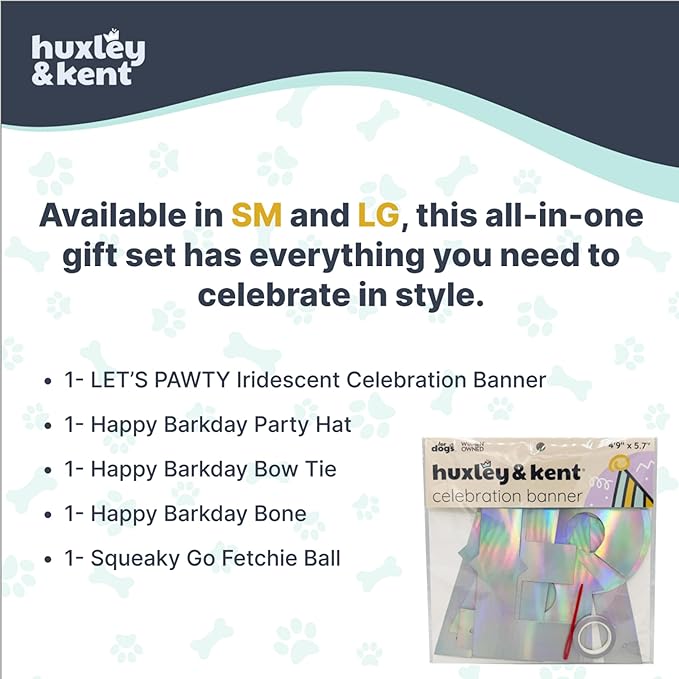 Huxley & Kent Celebration Box for Dogs - Fun Gift Set with Plush Squeaky Toys, Party Hat, Bow Tie & Banner - Birthday, Gotcha Day & Special Occasion Dog Set - Happy Barkday Box, Small