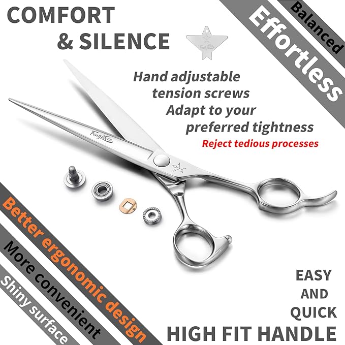 - ⭐Scope: Suitable for high-end groomers and cosmetologists, pet master as well as families, these scissors for hair are safe and easy to use on dog, cat, horse and other animals. At a weight of only 2.46 ounces, you can easily handle this shears to cut animal hair in a dimensional look as you want