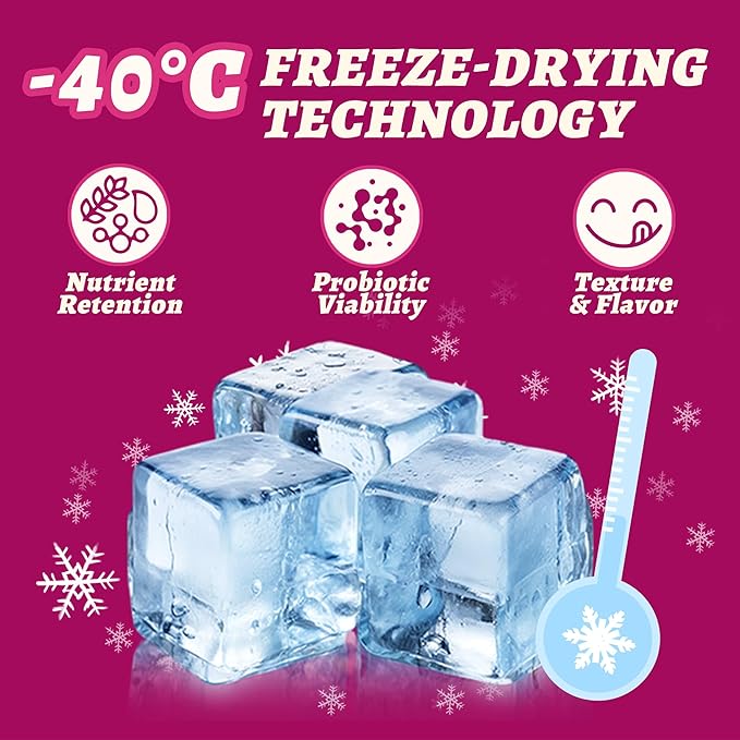Wellix Freeze-Dried Cat Treats for Dog & Cat - Triberry Yoggy Cat&Dog Yogurt Treats with Chicken Flavor Fruits - Probiotics Digestive & Immune Health Cats&Dogs Food Toppers 4.23oz
