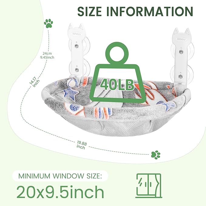 - 【Cordless Cat Hammock】 HiPetpy cat window perch measures 20.87 x 11.8 x 9.45 inches and supports cats weighing up to 44 lbs. Its cordless installation allows your cat to jump up and down freely.